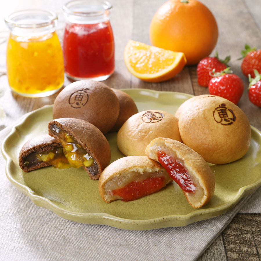 厳選した国産フルーツのこだわりジュレを、北海道バター香るふんわり食感の生地としっとりした自家炊きあんで包みました。