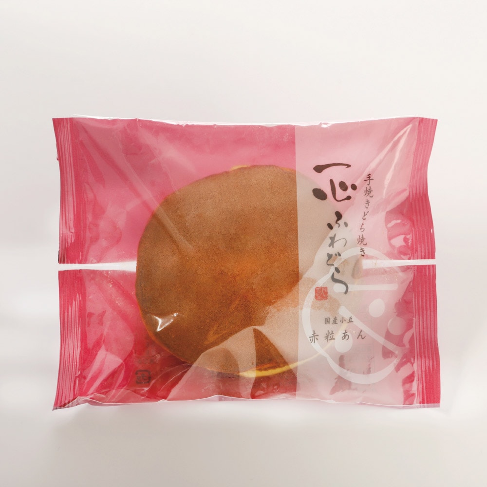 はちみつと卵をたっぷり使った国産小麦の真綿のような優しい食感の生地に、みずみずしく舌触りのよい粒あんをサンドして鮮度と食感にこだわった至高のどら焼き『一心ふわどら』です。赤粒あんにはみずみずしい丹波大納言小豆を使用し、つややかで味わい深い餡に仕上げました。